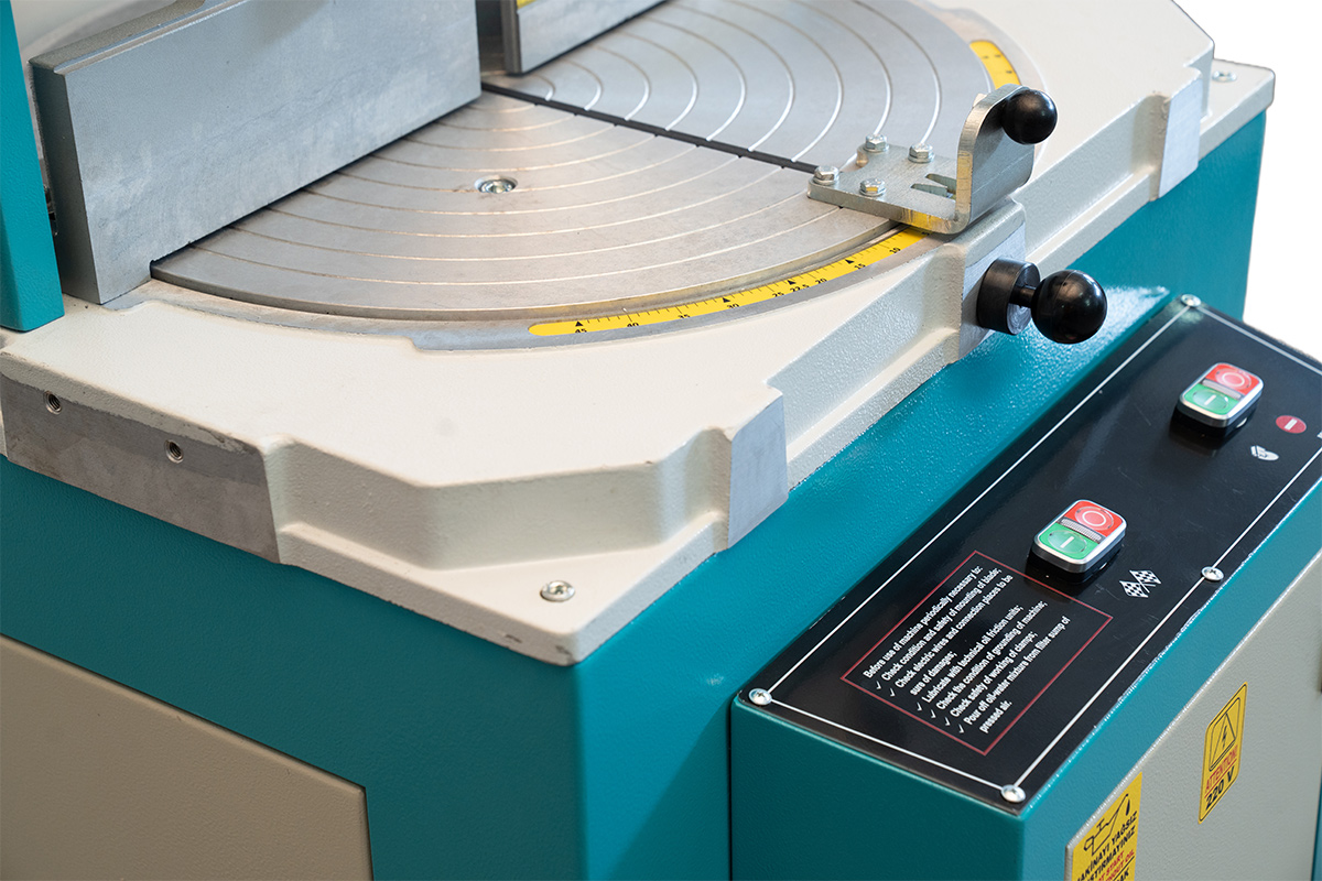 Seri PVC ve alüminyum profil kesimi için geliştirilen AC450, Ø400 mm elmas testeresi ve güçlü alüminyum döküm gövdesiyle stabil bir çalışma performansı sunar. 0° ile 45° arasındaki sabit açılarda stoper sistemi, ara derecelerde ise tabla sabitleme kolu ile her açıda milimetrik doğruluk sağlar. Elektropnömatik altyapısı ve ayarlanabilir testere hızı, üretim verimliliğinizi artırır.