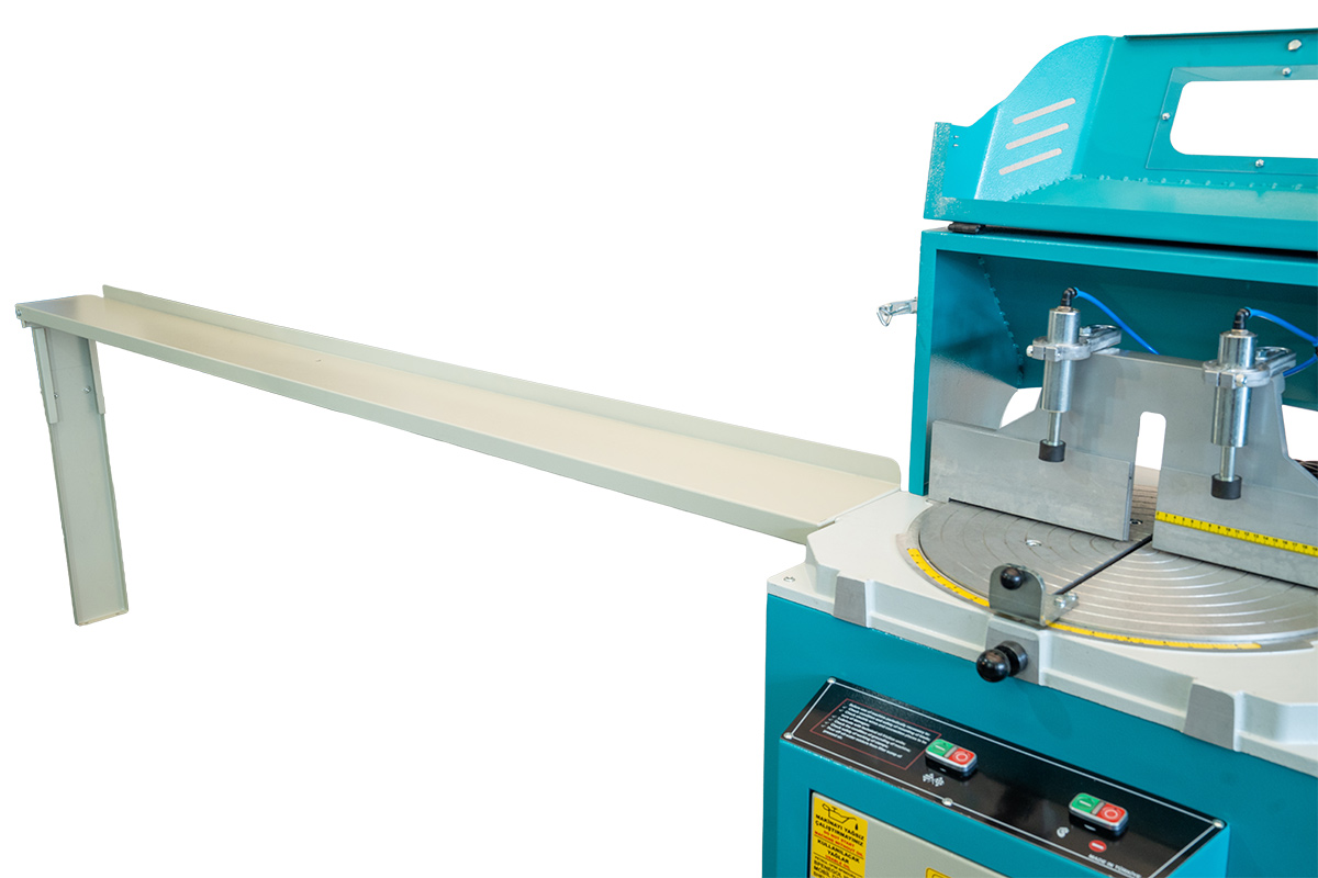 Açı ayarlarında geniş bir esneklik sunan AC450; 0°, 15°, 22.5°, 30° ve 45° gibi standart açılar için özel stoper noktalarına sahiptir. Ara derecelerdeki kesimler için geliştirilen tabla sabitleme kolu, makinenin istenilen her açıda rijit bir şekilde sabitlenmesini sağlar. Makinenin standart donanımında yer alan sağ ve sol 2.5 metrelik konveyör sistemleri, uzun profillerin dengeli bir şekilde işlenmesini kolaylaştırır. Alüminyum profillerde yüksek yüzey kalitesi elde etmek isteyenler için opsiyonel olarak soğutma cihazı ve kesim stabilitesini artıran hidro-check sistemi eklenebilir.